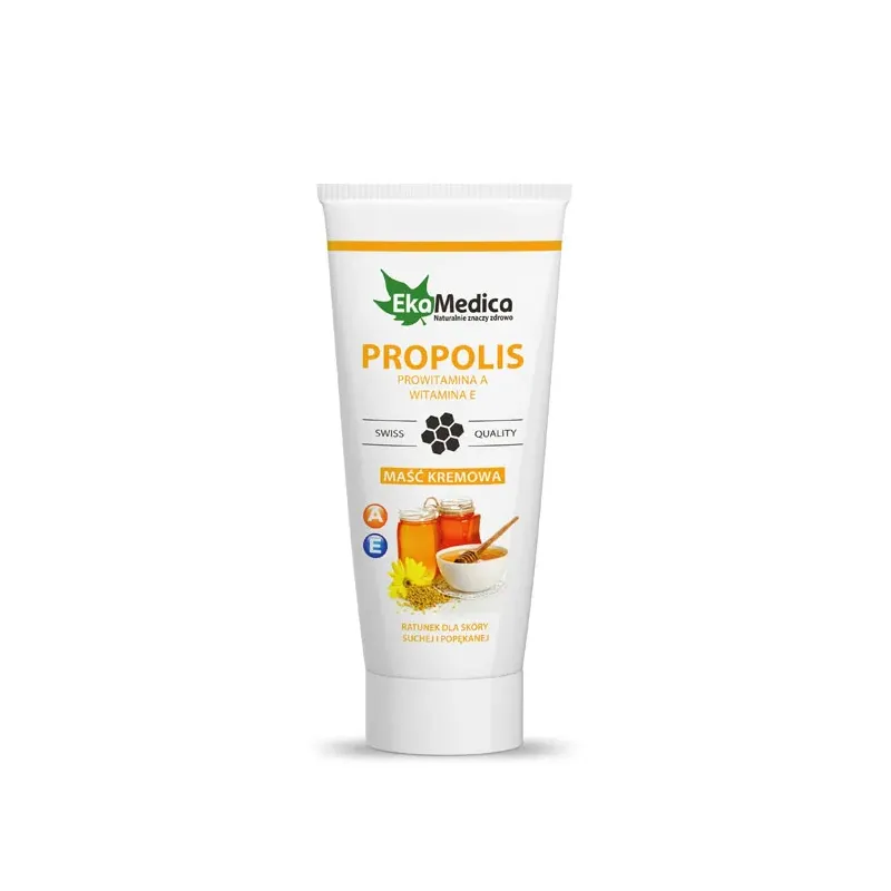 Maść kremowa propolisowa marki EkaMedica to preparat stworzony z myślą o intensywnej pielęgnacji suchej, szorstkiej i spierzchniętej skóry. Dzięki zawartości propolisu, prowitaminy A i witaminy E, krem działa odżywczo, ochronnie i regenerująco, przywracając elastyczność i miękkość naskórka.