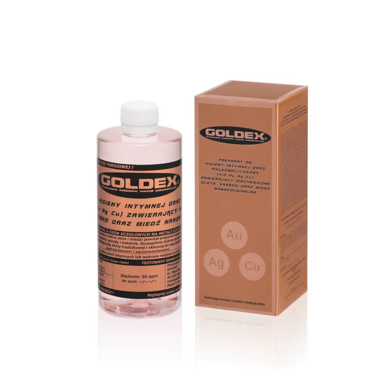 Złoto nanokoloidalne marki Goldex w butelce 500 ml to preparat zawierający drobne cząsteczki złota w roztworze wodnym. Produkt wykorzystywany jest w celach suplementacyjnych i kosmetycznych, jako składnik wspierający codzienną pielęgnację. Nanokoloidalna postać złota charakteryzuje się wysoką czystością i jednorodnością zawiesiny.
