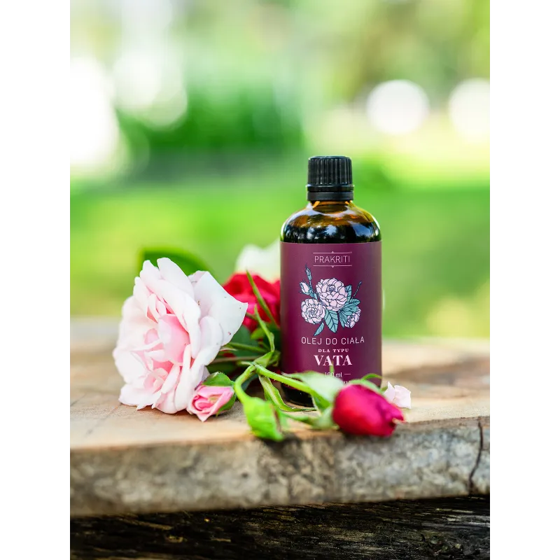 Ajurwedyjski olej VATA Prakriti to połączenie tłoczonych na zimno olejów roślinnych i ziół ajurwedyjskich, które wspierają codzienną pielęgnację skóry suchej, wrażliwej i dojrzałej.