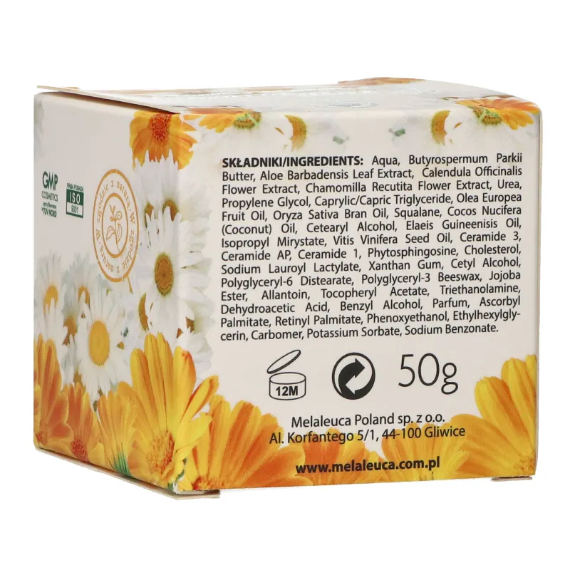 Krem do twarzy z rumiankiem i nagietkiem to naturalna, odżywczo-regenerująca pielęgnacja dla każdego rodzaju skóry, także wrażliwej. Synergiczne działanie roślinnych ekstraktów, ceramidów oraz olejów roślinnych zapewnia skórze intensywne nawilżenie, ukojenie i ochronę przed czynnikami zewnętrznymi.