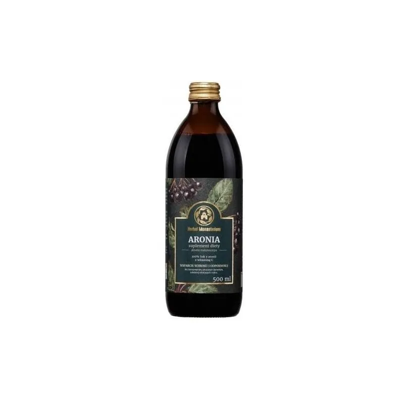 Aronia czarna (Aronia melanocarpa (Michx.) Elliott) to gatunek krzewu należący do rodziny różowatych. Jest rośliną owocową oraz cennym surowcem zielarskim. Jej owoce wykorzystywane są przede wszystkim do sporządzania syropów oraz soków. Dzięki dodatkowi witaminy C Aronia Herbal Monasterium znajdzie zastosowanie przede wszystkim jako uzupełnienie diety w okresie jesienno-zimowym oraz w czasie przesilenia wiosennego. Witamina C wspiera prawidłowe funkcjonowanie układu odpornościowego. Dodatkowo przyczynia się także do zmniejszenia uczucia zmęczenia oraz znużenia. Witamina C przyczynia się także do ochrony komórek przed stresem oksydacyjnym.