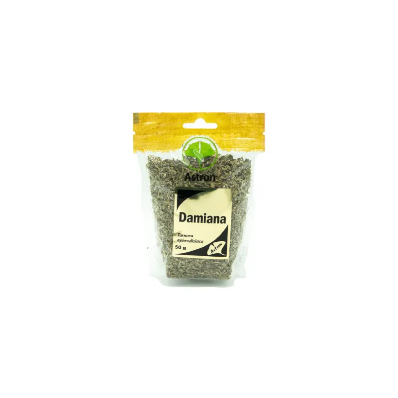 Damiana liść 50 g Astron to wysokiej jakości, naturalne suszone liście rośliny Turnera diffusa. Zioło to od lat cenione jest w ziołolecznictwie oraz medycynie naturalnej za swoje właściwości wspierające organizm i poprawiające ogólne samopoczucie. Produkt marki Astron wyróżnia się czystością, intensywnym aromatem i starannym doborem surowca.