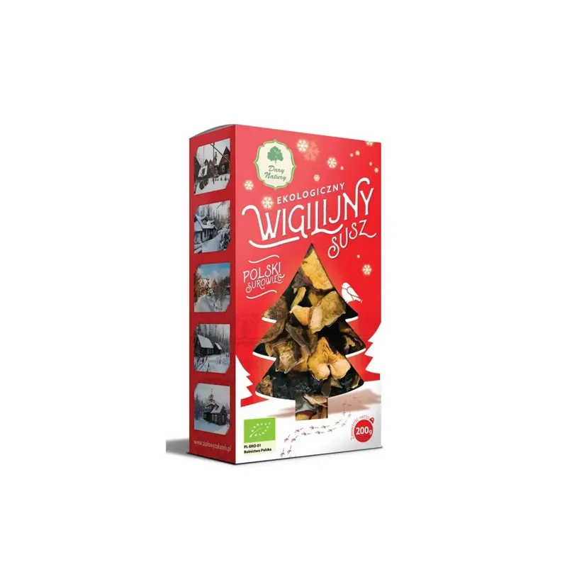 Mieszanka suszonych owoców i przypraw przygotowana z myślą o tradycyjnych wigilijnych napojach i potrawach. Zawiera naturalne składniki typowe dla świątecznych kompotów, takie jak suszone jabłka, gruszki, śliwki oraz aromatyczne dodatki korzenne. Produkt w 100% naturalny, bez dodatku cukru i sztucznych aromatów.