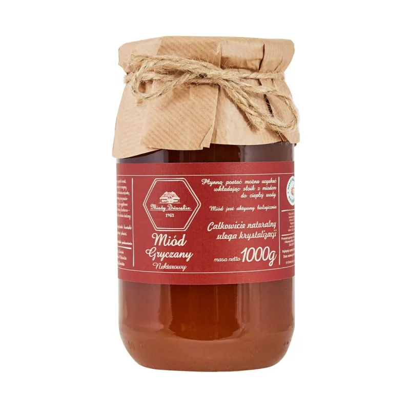 Poznaj wyjątkowy smak miodu gryczanego 1000 g – jednego z najbardziej charakterystycznych i cenionych miodów w Polsce. Pochodzi z nektaru kwiatów gryki, a jego głęboki, lekko palony aromat i ciemna, brunatna barwa sprawiają, że od lat uchodzi za miód dla prawdziwych koneserów.