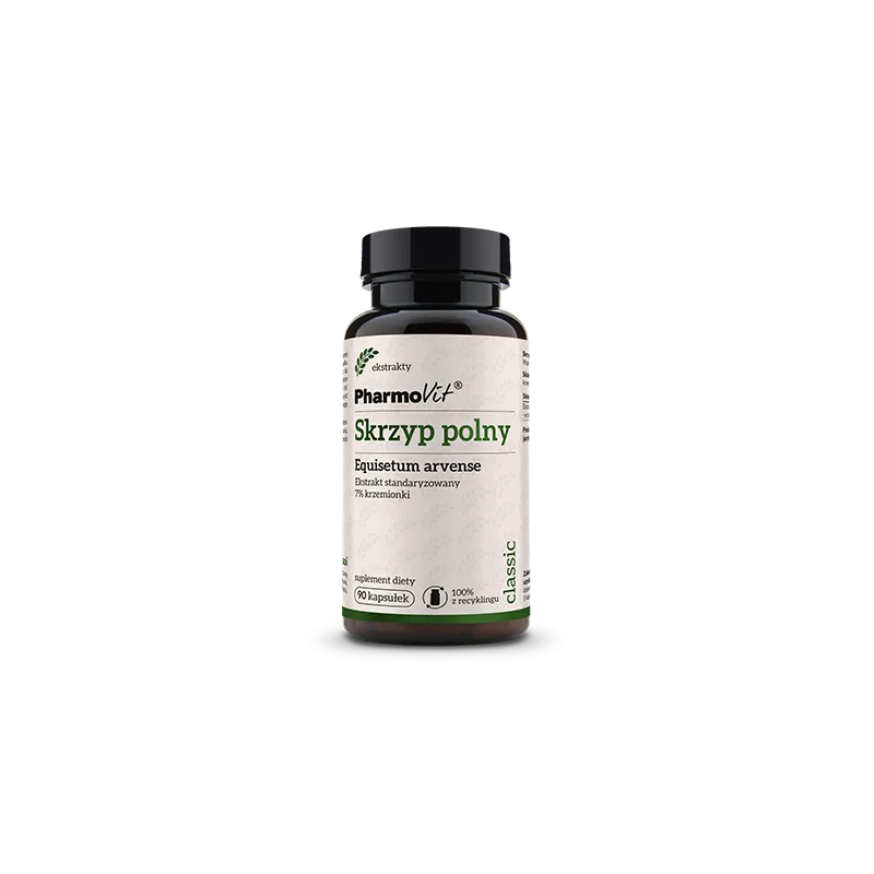 Skrzyp polny (Equisetum arvense) to naturalny surowiec roślinny wspomagający kondycję włosów, skóry i paznokci. Regularne stosowanie ekstraktu ze skrzypu polnego wspiera także funkcje wydalnicze nerek oraz pomaga w prawidłowej pracy wątroby.