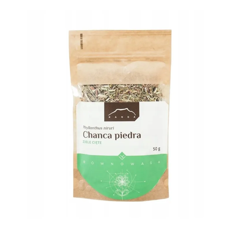 Chanca piedra (Phyllanthus niruri) w postaci ciętego ziela marki NANGA, opakowanie 50 g, to naturalny surowiec ziołowy ceniony w tradycyjnym ziołolecznictwie. Ziele chanca piedra stosowane jest wspomagająco w utrzymaniu prawidłowego funkcjonowania układu moczowego i wątroby oraz wspiera naturalne procesy oczyszczania organizmu.