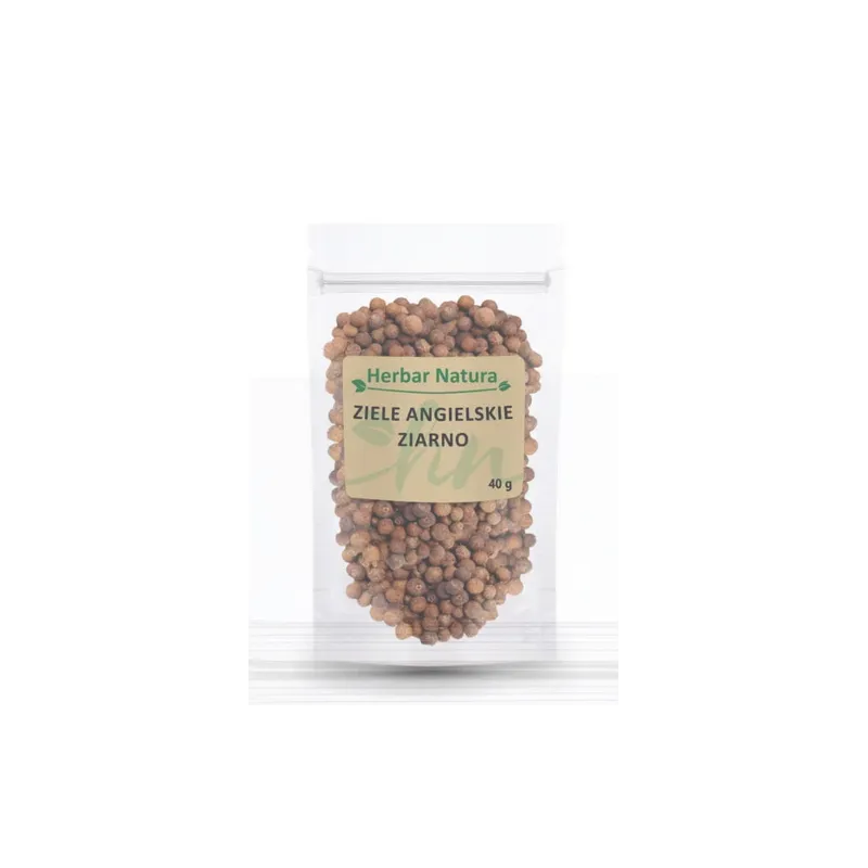 Ziele angielskie (Pimenta dioica) w ziarnach marki Herbar w opakowaniu 40 g. Naturalna przyprawa o charakterystycznym aromacie, wykorzystywana w kuchni do wzbogacania smaku potraw mięsnych, sosów, marynat oraz kompotów i przetworów.