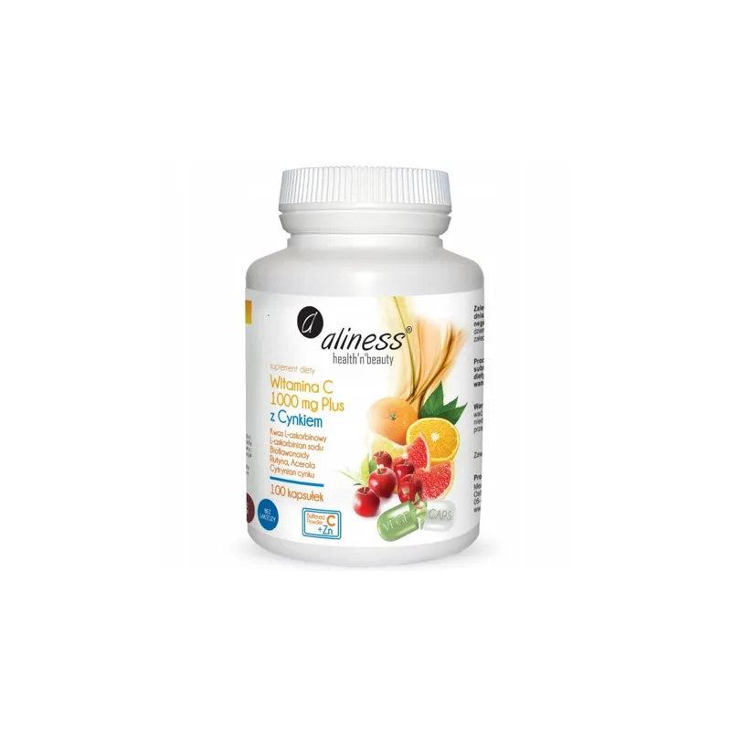 Witamina C 100 g + Cynk Aliness to praktyczny i skuteczny suplement diety wspierający odporność, zdrowie stawów i skóry oraz codzienną profilaktykę zdrowotną.