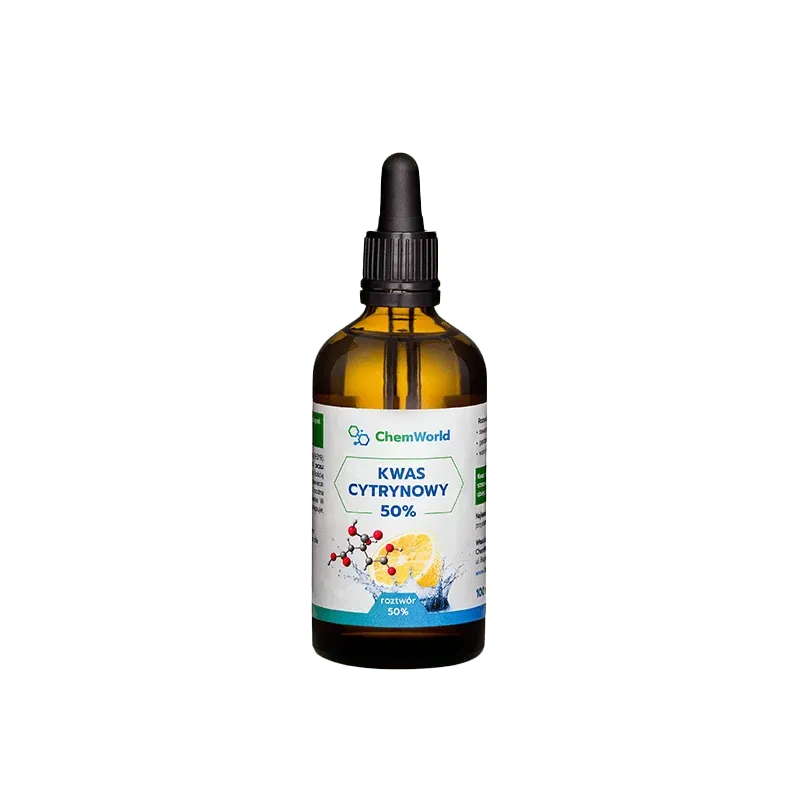 Kwas cytrynowy 50% ChemWorld to odczynnik chemiczny analityczny przeznaczony wyłącznie do celów laboratoryjnych, edukacyjnych i technicznych. Każde inne zastosowanie odbywa się na własną odpowiedzialność użytkownika.