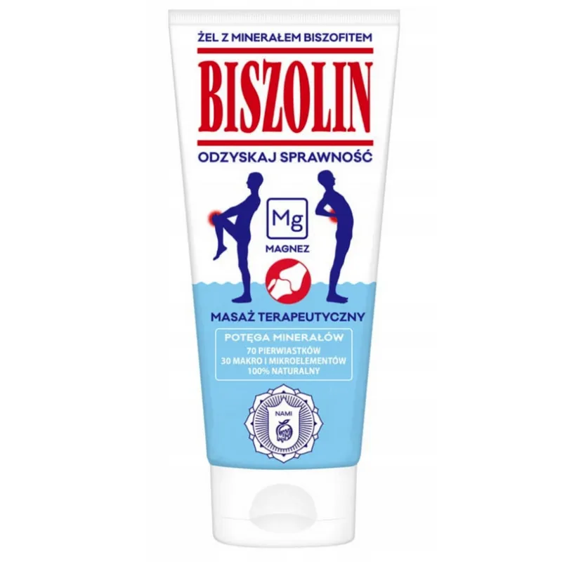 Biszolin to naturalny żel magnezowy zawierający cenny minerał – biszofit, bogaty w łatwo przyswajalny magnez oraz inne pierwiastki, takie jak wapń, potas, sód, brom i żelazo. Formuła żelu została opracowana z myślą o pielęgnacji skóry w okolicach mięśni i stawów. Produkt przynosi uczucie ulgi, rozluźnienia i odprężenia, szczególnie po wysiłku fizycznym lub długotrwałym napięciu mięśniowym.