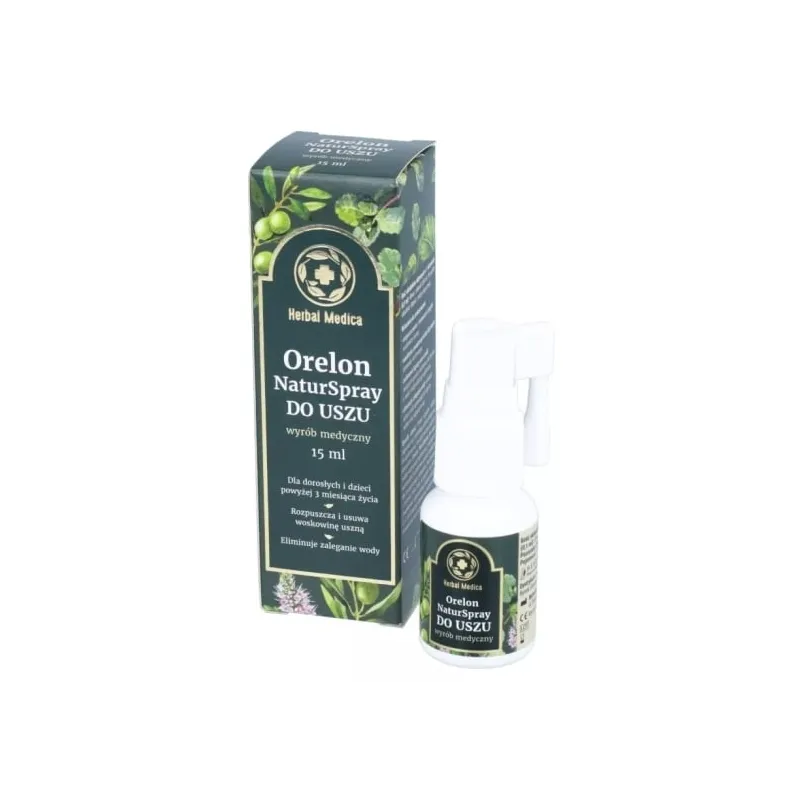 Orelon NaturSpray do higieny uszu to skuteczny i bezpieczny spray do uszu, który w naturalny sposób rozpuszcza i usuwa zalegającą woskowinę. Dodatkowo nawilża kanał słuchowy, utrzymując w ten sposób jego prawidłową higienę. Czysty i odpowiednio nawilżony przewód słuchowy zapobiega gromadzeniu się woskowiny co przeciwdziała skutkom jej zalegania (m.in. stanom zapalnym). Zawarty w wyrobie medycznym spray do uszu Orelon NaturSpray olejek miętowy ogrzewa ucho, zapewniając lepsze odczucia dla pacjenta oraz świeży zapach preparatu. Produkt przeznaczony jest dla dorosłych oraz dzieci powyżej 3 miesiąca życia.