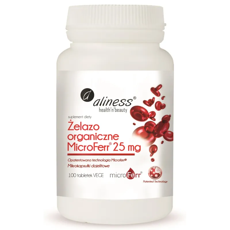 Suplement diety w innowacyjnej, mikronizowanej i mikrokapsułkowanej postaci żelaza organicznego MicroFerr®, wzbogacony witaminą C, wspierający prawidłową produkcję czerwonych krwinek, transport tlenu i redukcję zmęczenia.