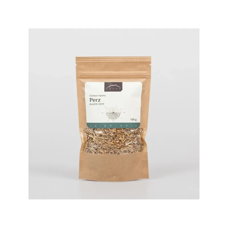 Kłącze perzu (Elymus repens) w postaci suszonego, ciętego surowca marki NANGA, opakowanie 100 g, to naturalny produkt roślinny stosowany tradycyjnie w ziołolecznictwie. Perz ceniony jest ze względu na swoje właściwości wspierające prawidłowe funkcjonowanie układu moczowego i nerek oraz wspomagające naturalne procesy oczyszczania organizmu. Produkt nadaje się do przygotowania naparów, herbatek i mieszanek ziołowych.