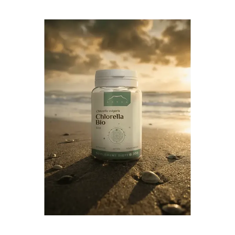 Chlorella Bio 500 mg to wysokiej jakości suplement diety zawierający 100% czystą chlorellę (Chlorella vulgaris) w postaci sprasowanych tabletek. Produkt pochodzi z ekologicznych upraw i nie zawiera żadnych dodatków, wypełniaczy ani substancji konserwujących. Jest to idealny wybór dla osób dbających o zdrowie, odporność oraz naturalne oczyszczanie organizmu.