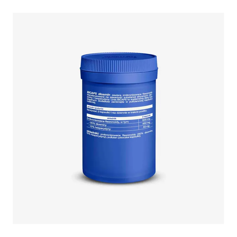 BICAPS diosmin to suplement diety zawierający zmikronizowane flawonoidy – diosminę i hesperydynę – w proporcji 9:1. Proces mikronizacji zwiększa powierzchnię cząsteczek, co wpływa na lepszą przyswajalność składników aktywnych.