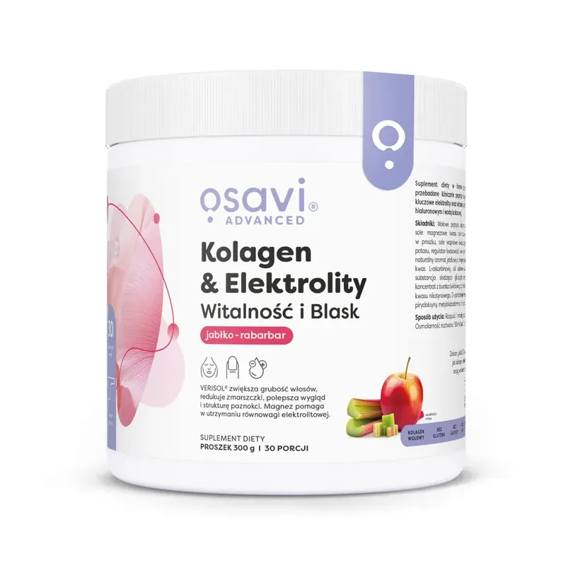 Produkt zawiera bioaktywne peptydy kolagenowe VERISOL®, które są szczególnie cenione za wsparcie kondycji skóry. Formuła została wzbogacona o kwas hialuronowy, który pomaga utrzymać odpowiednie nawilżenie, oraz kompleks elektrolitów wspierających równowagę wodno-elektrolitową organizmu.