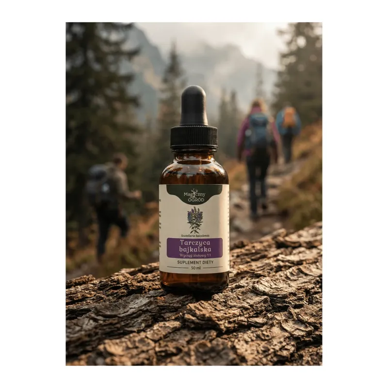 Nalewka z tarczycy bajkalskiej wspiera pracę mózgu, usprawnia funkcje poznawcze i zwiększa odporność organizmu na stres. Dodatkowo stymuluje naturalne procesy przeciwzapalne oraz wspiera prawidłowe krążenie i funkcjonowanie układu sercowo-naczyniowego. Produkt może być stosowany także jako uzupełnienie pielęgnacji skóry problematycznej, w tym skłonnej do trądziku.