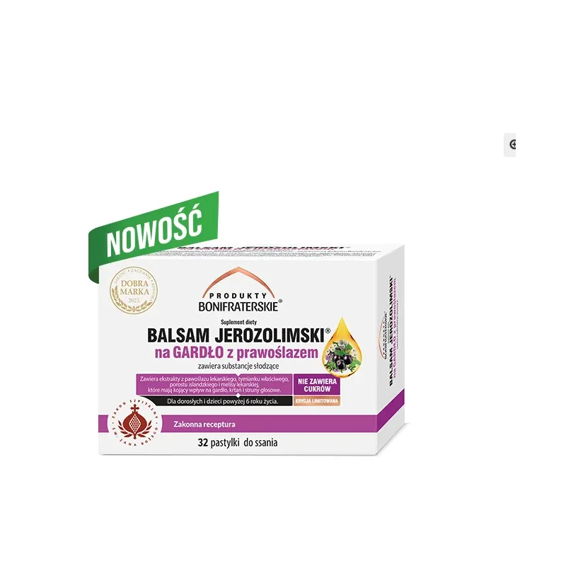 Balsam Jerozolimski na gardło z prawoślazem 32 pastylki do ssania Produkty Bonifraterskie