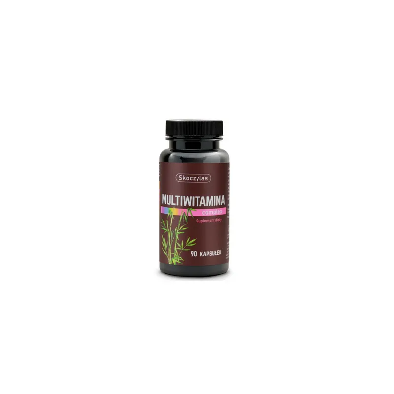 Multiwitamina z krzemem, borem i jodem marki Skoczylas to kompleks witamin i minerałów wspierający odporność, zdrowie kości, prawidłowe funkcjonowanie układu nerwowego i mięśniowo-nerwowego oraz stabilizację układu krążenia. Zawiera m.in. witaminy A, D, K, B6, B12, kwas foliowy oraz minerały: selen, miedź, wapń, żelazo i jod. Jedna kapsułka dostarcza wszystkich niezbędnych składników, odpowiednia dla wegan i wegetarian.