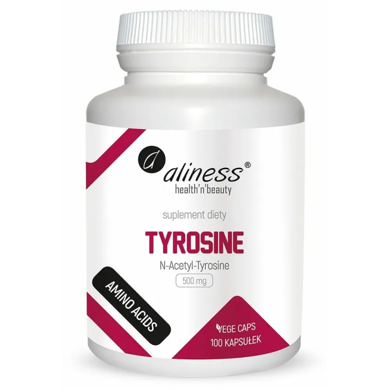 Aliness N-Acetyl-Tyrosine 500mg to wysokiej jakości suplement zawierający acetylowaną wersję aminokwasy tyrozyny. Wersja acetylowana jest lepiej rozpuszczalna oraz bardziej biodostępna.