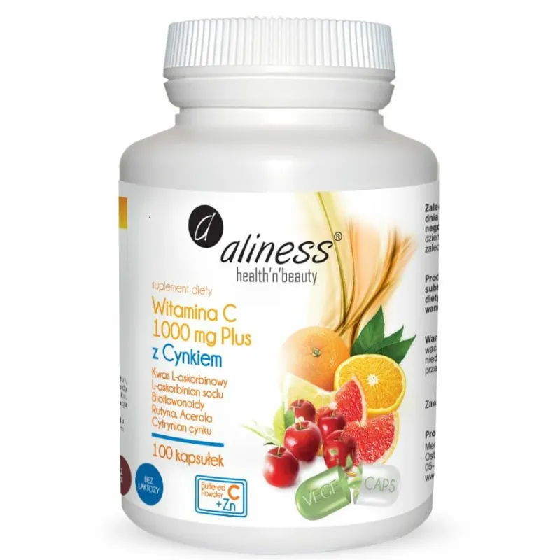 Witamina C 1000 mg z CYNKIEM PLUS bioflaw, rutyna, acer. x 100 VEGE kaps. Aliness