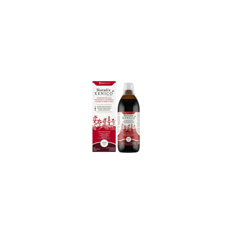 Bioradix Xenico żelazo w płynie 500 ml to wygodny i naturalny sposób na uzupełnienie poziomu żelaza w organizmie, wspierający prawidłową produkcję czerwonych krwinek, energię i odporność.