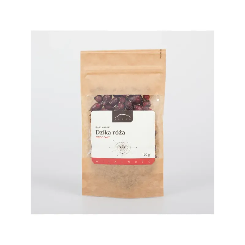 Dzika róża (Rosa canina) to ceniona od wieków roślina wykorzystywana w tradycyjnej medycynie europejskiej. Jej intensywnie czerwone owoce stanowią wartościowy surowiec zielarski, bogaty w naturalną witaminę C, flawonoidy, kwasy organiczne, garbniki oraz związki o działaniu antyoksydacyjnym. Produkt pochodzi z upraw konwencjonalnych w Polsce i jest przeznaczony do przygotowywania naparów, odwarów, nalewek oraz domowych przetworów.